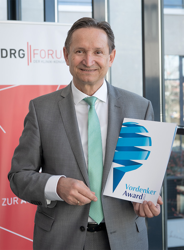 Der Preisträger ist ein Pionier der regionalen, integrierten Versorgung in Deutschland. Seit über 35 Jahren arbeitet er intensiv und erfolgreich daran, das Gesundheitssystem von Grund auf zu verbessern – mit unternehmerischem Mut, Weitsicht und Hartnäckigkeit. Er prägte von Anfang an die Diskussionen über Managed-Care-Programme und vernetzte Strukturen, die Überwindung der Sektoren und den Aufbau von Netzwerken in den Regionen. Sein Ziel ist eine nachhaltige, bedarfsgerechte und regional organisierte Gesundheitsversorgung, die sowohl dem einzelnen Patienten als auch der gesamten Gesellschaft Vorteile bringt und die Gesundheitsberufe zusammenführt.